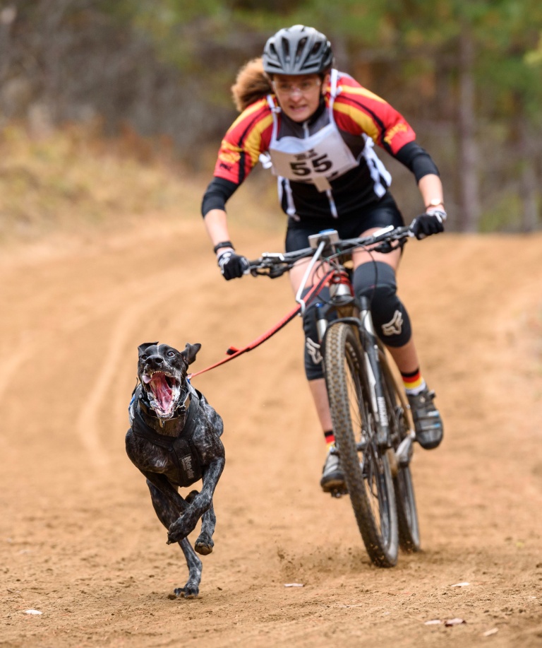 In 2014 I imported Greyster Indi from Poland. She was one of the first two Greysters in the UK. She is a purpose bred bikeoring dog and has great speed and strength. I only bikejor and scooter her, she would be too much for me to canicross. We've had great adventures and successes so far competing all over the UK, Belgium, Germany and Canada. We've become British National Champions, 5th at the ECF European Championships and 7th at the IFSS World Championships.